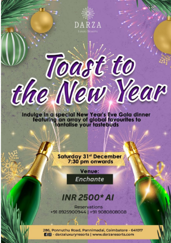 Unlimited drinks/ varietie's of non veg and veg dinner.Starts from 7.00 pm.Gala dinner,DJ music,Magic shows,Tribal dance.