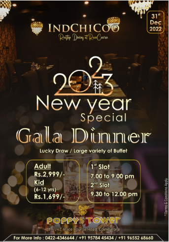 Unlimited dinner for new year night.50 variety of foods.Chicken/ fish/ prawns/lamb.First slot - 7 - 9pm.second slot 9.30 - 12pm.