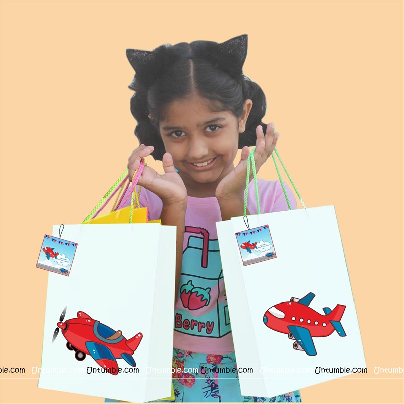 Customized return gift bag based on the theme. White bag with a theme based customized sticker on the front side.