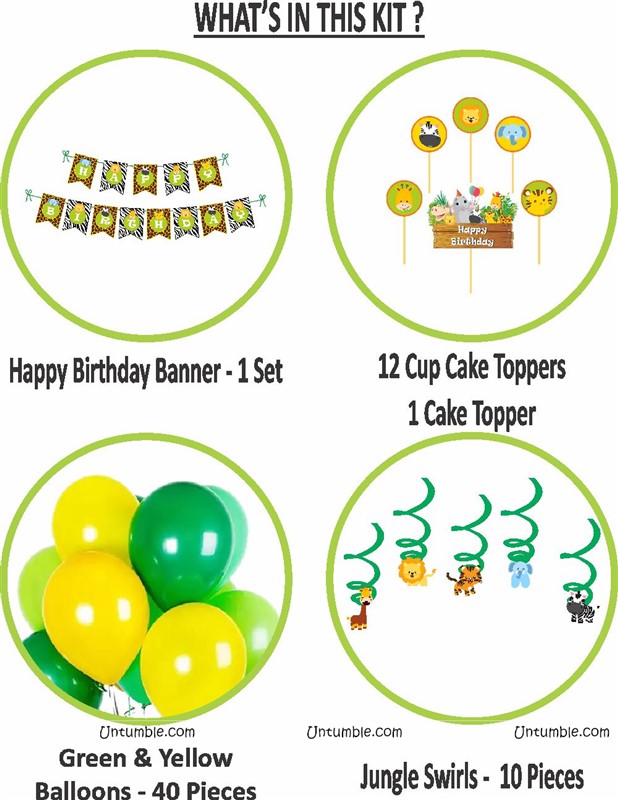 Jungle Animals Super saver birthday decoration kit (Pack of 58 pieces)