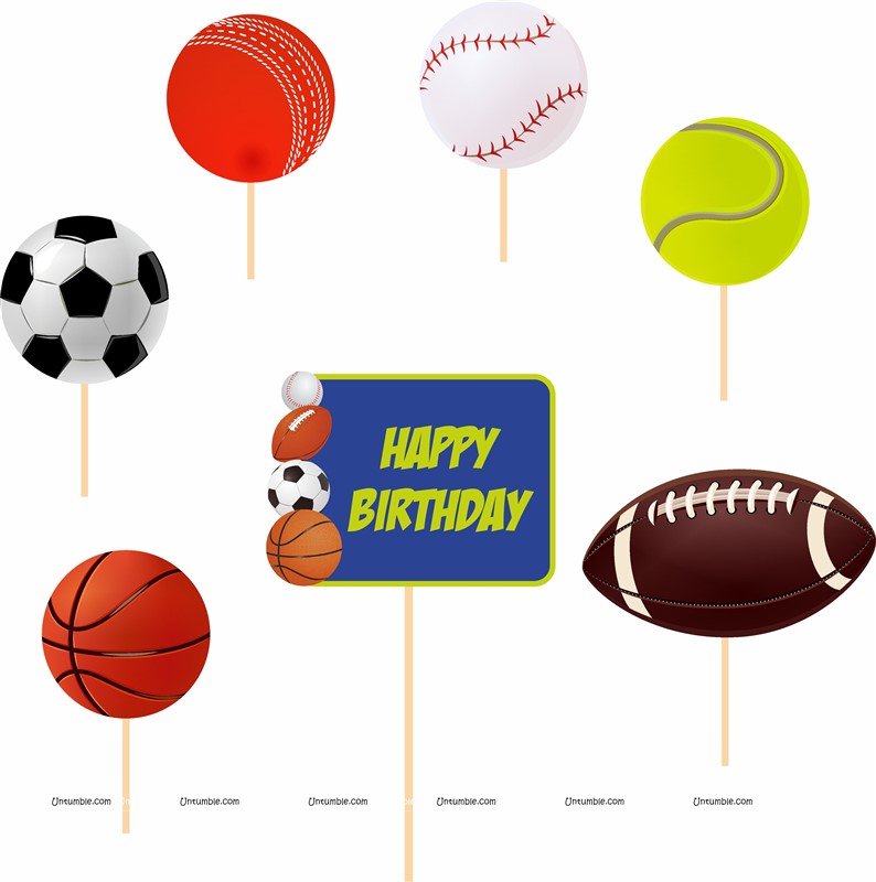 Ball Theme Swirls and Cup Cake Toppers Kit