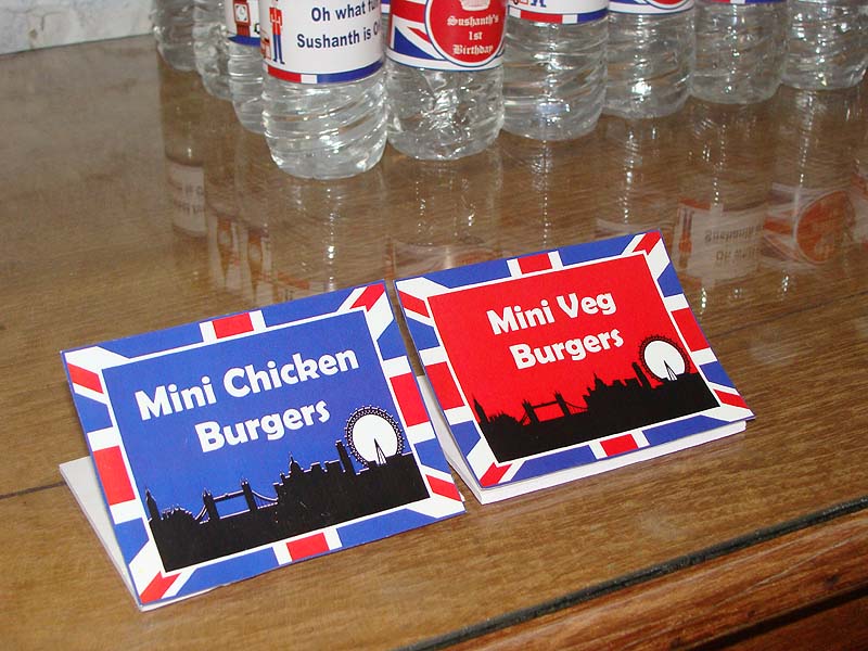 Theme based food labels that has the menu item printed on it.