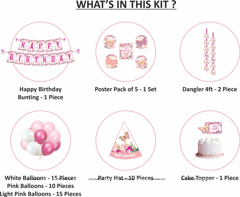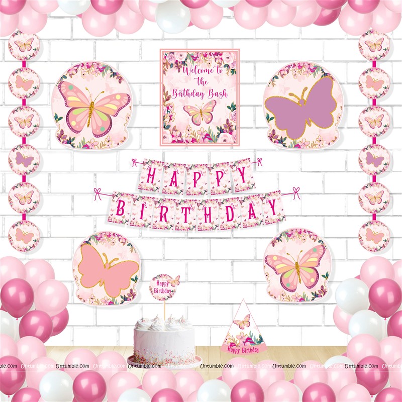 Butterfly theme Super saver birthday decoration kit (Pack of 58 pieces)