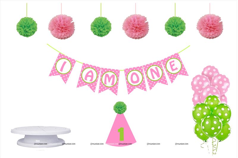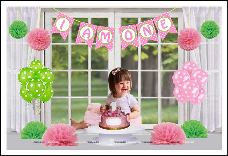 Girl 1st Birthday Cake Smash Photo Shoot kit (Pack of 17 pieces)