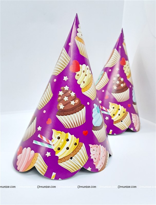A party is incomplete without hats. These fully customized hats are printed to the theme and can incorporate a name and a snippet of text.