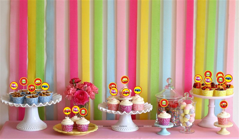 Cute Pastel Cars Theme Backdrop