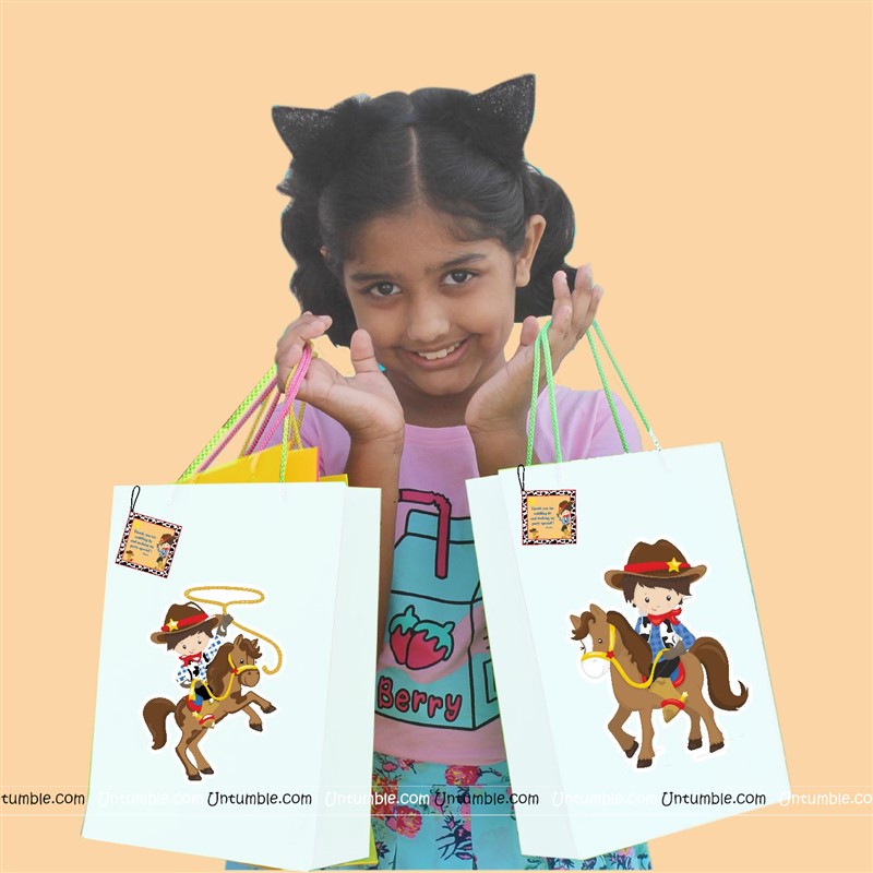 Cowboy Birthday theme Stickered gift bags