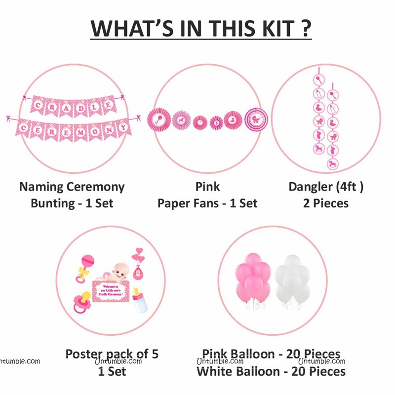 Baby Girl Cradle Ceremony Swirls Kit ( Pack of 51 pcs)