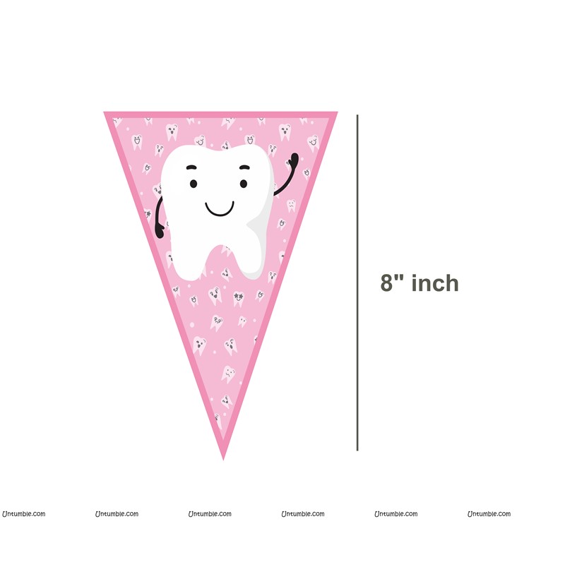 Pink First Tooth Banner and Cake Topper Kit (Pack of 2 Pcs)