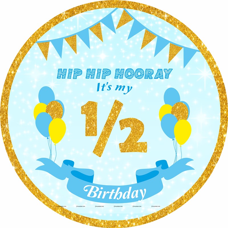 Half Birthday Backdrop and paper Fan Kit ( blue)