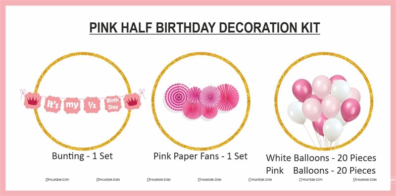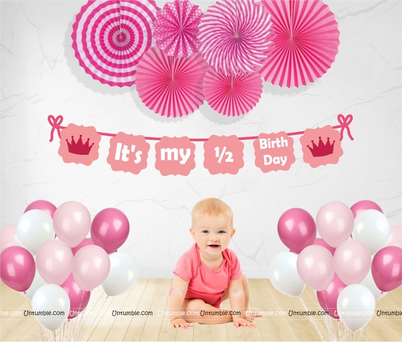 Half Birthday Backdrop and paper Fan Kit ( Pink )
