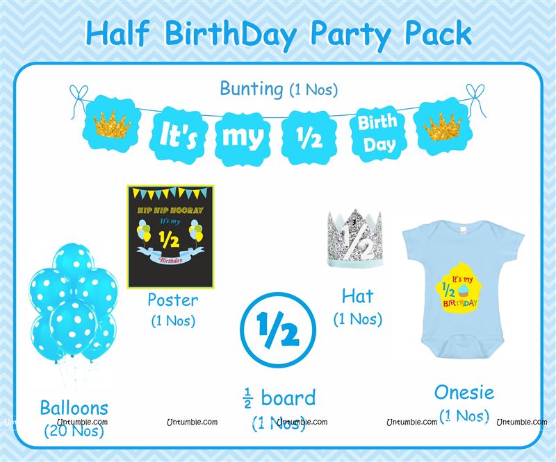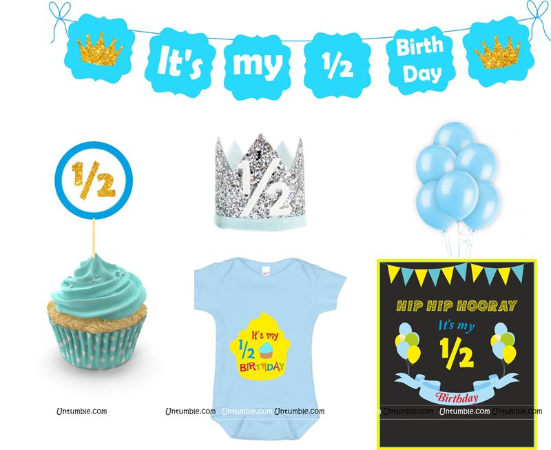 Six Month Birthday theme - Six Month Birthday theme Blue Half Birthday party kit for a baby boy