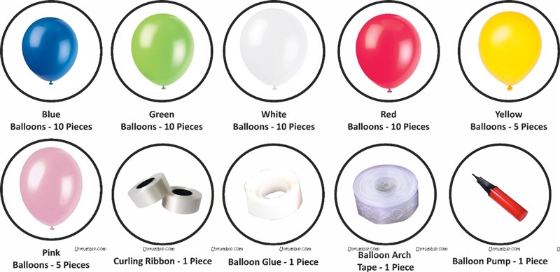 Create Balloon Clouds by yourself using this pack containing balloons, balloon glue, arch strip and a balloon pump.