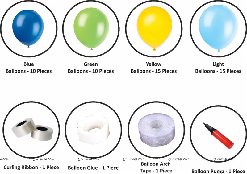 Create Balloon Clouds by yourself using this pack containing balloons, balloon glue, arch strip and a balloon pump.