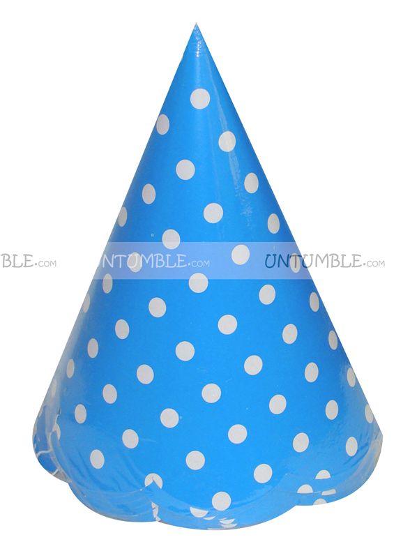 Cone shaped birthday hats for kids and adults made from high quality paper board and elastic.