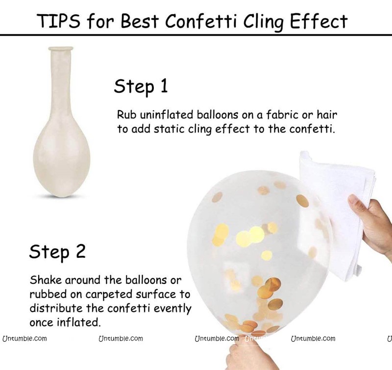 Tip: To make confetti stick to the balloon, bring the confetti to an area where you need it on the balloon and rub the balloon with a soft cloth.