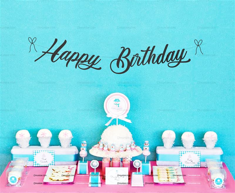 An elegant black Happy Birthday Banner decoration which can be used for all milestone birthdays like 18th birthday, 21st birthday, 30th birthday, 40th birthday, 50th birthday and 60th birthday