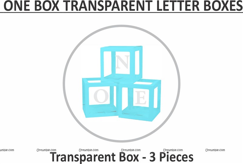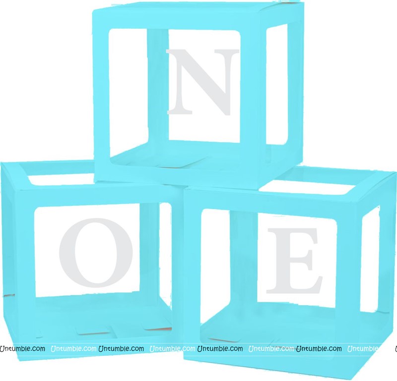 Transparent Letter boxes for balloons. Cube shaped boxes that can hold balloons with some text stuck on the sides. Used for Birthdays & Baby showers. ONE box available in white, blue and pink.