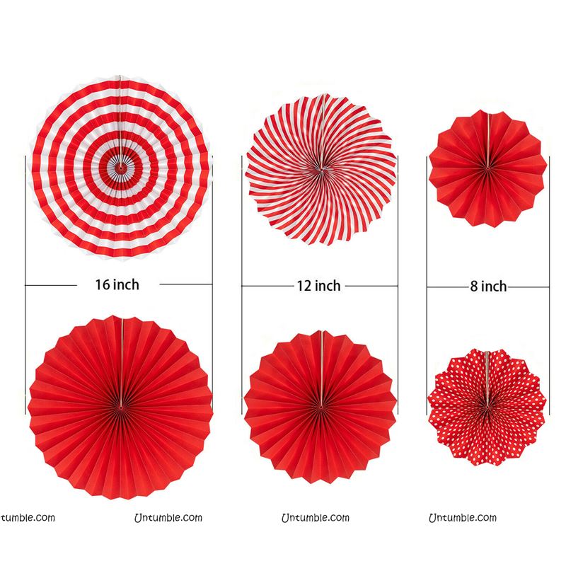 Set of 6 barnyard paper fans for a barnyard theme party. Includes 16" paper fans 2 pcs 12" paper fans 2 pcs 8" paper fans 2 pcs