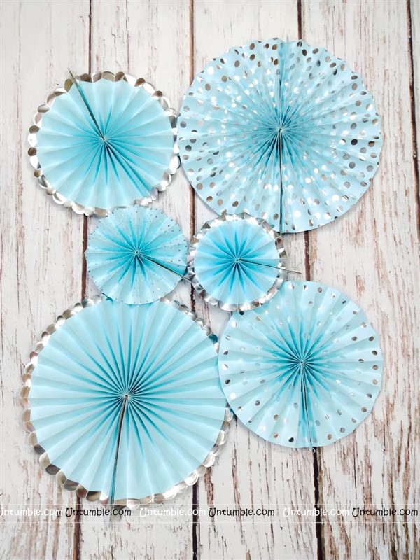 Elegant silver trimmed paper fan set to add life to any festive or party decor