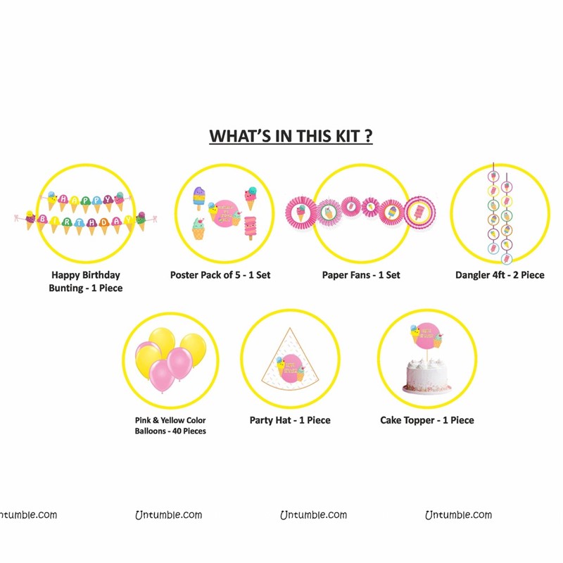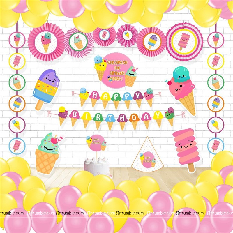 Ice Cream theme Super saver birthday decoration kit (Pack of 58 pieces)