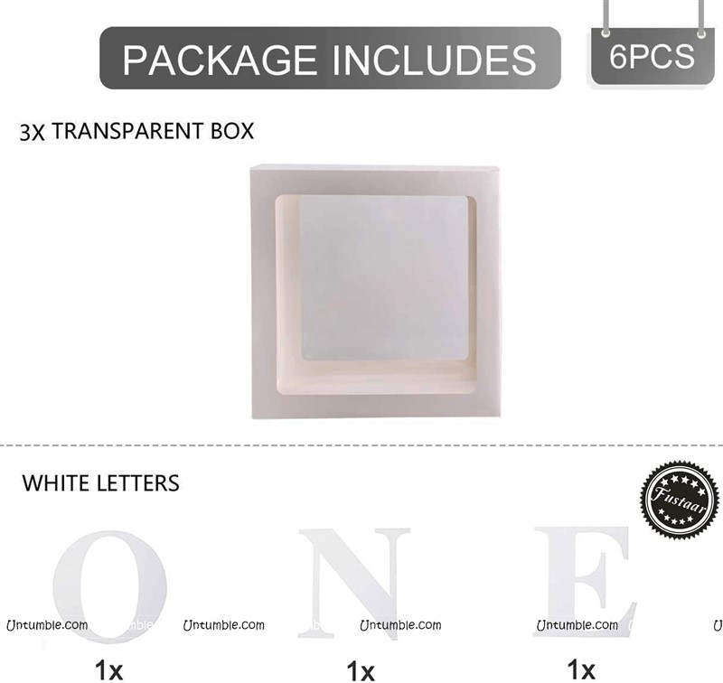 Transparent Letter boxes for balloons. Cube shaped boxes that can hold balloons with some text stuck on the sides. Used for Birthdays & Baby showers. ONE box available in white, blue and pink.#One ballon