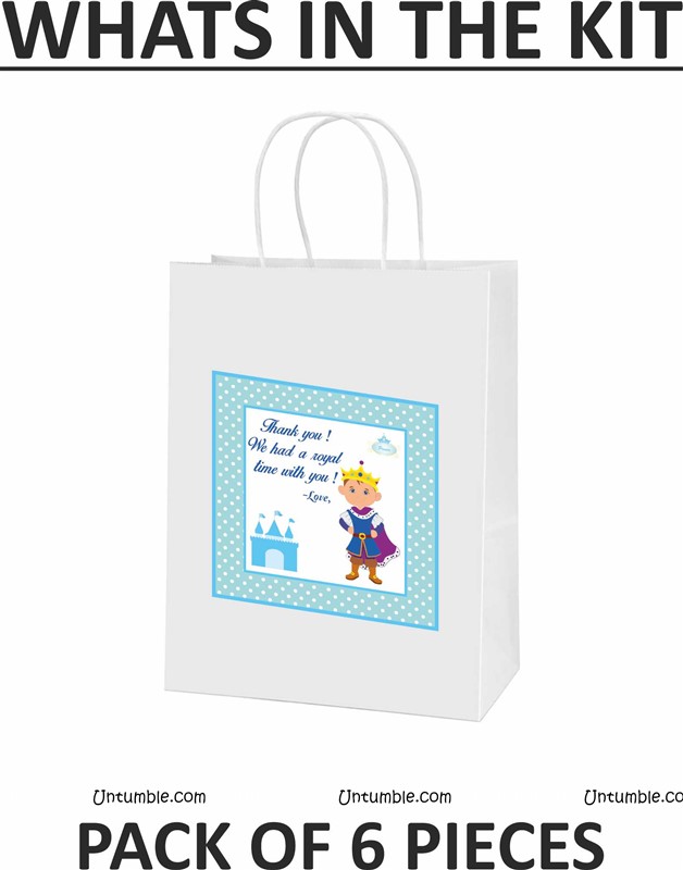 Customized return gift bag based on the theme. White bag with a theme based customized sticker on the front side.