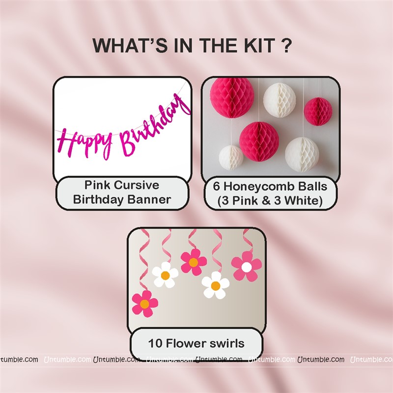 Birthday Decoration kits with Swirls, Banners, Balloons, Posters and more#swrils