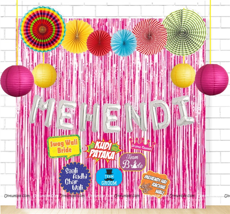Mehendi Foil Balloon and Paper Fan Curtain Kit with Photo Props