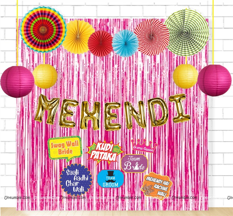 Mehendi Foil Balloon and Paper Fan Curtain Kit with Photo Props