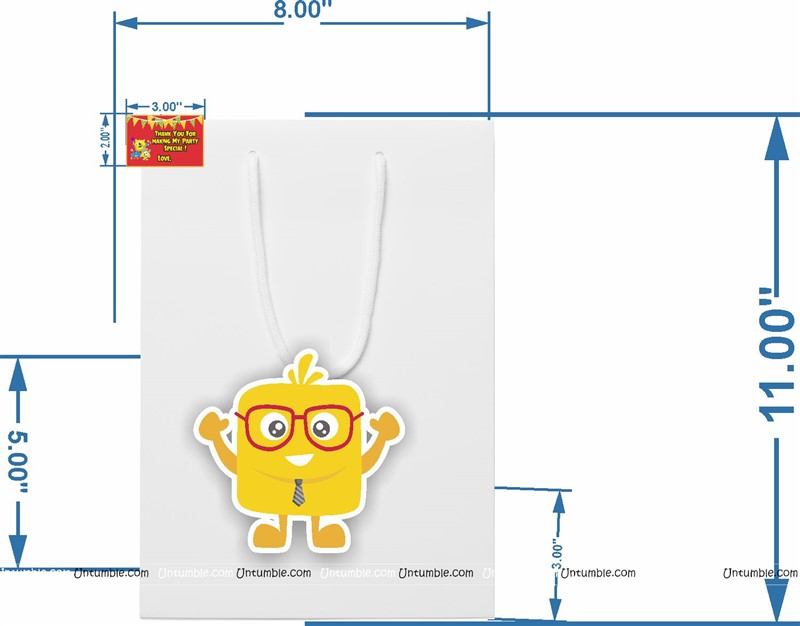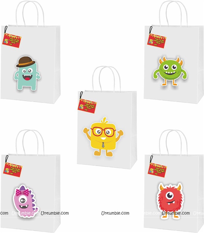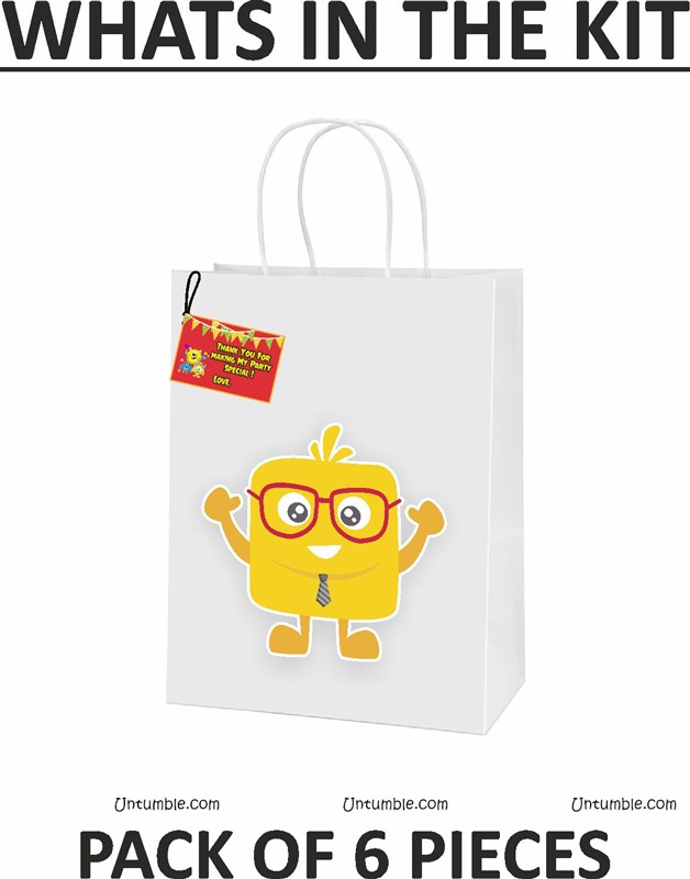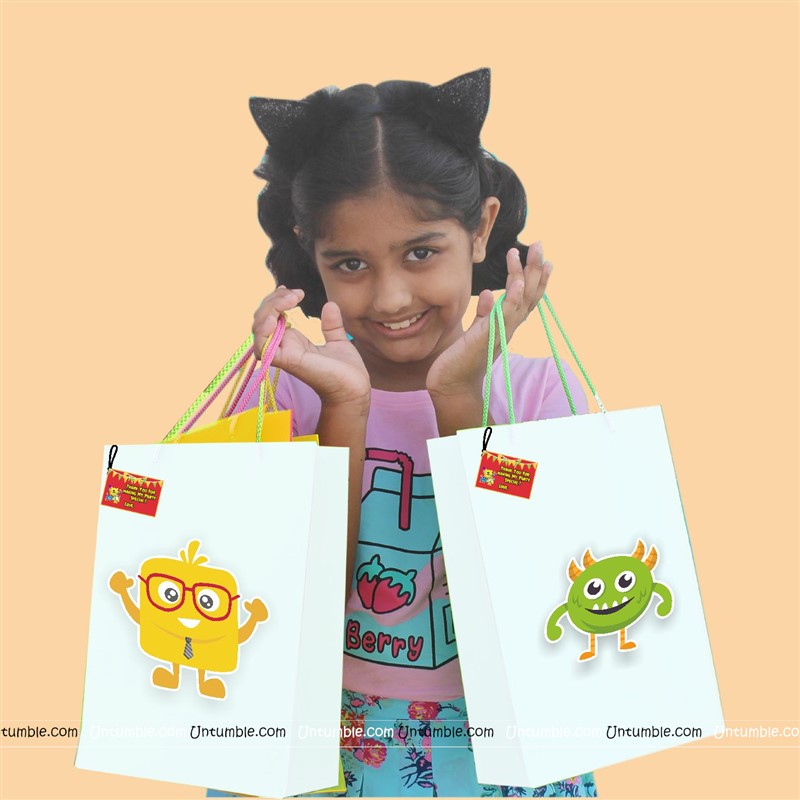 Customized return gift bag based on the theme. White bag with a theme based customized sticker on the front side.