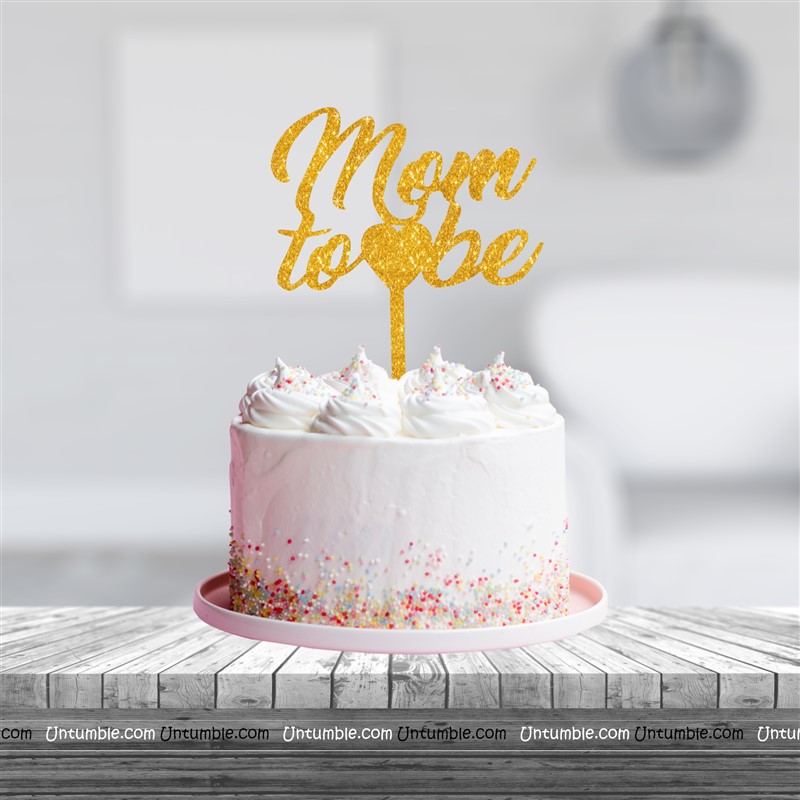 Cake toppers for a maternity photo shoot, baby shower or pregnancy announcement made from acrylic glass