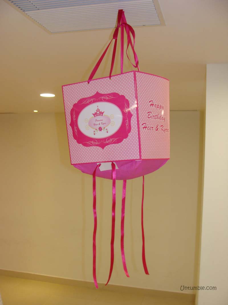 A pinata is a ceiling hanging that has goodies in it. As part of a game it is hit/pulled to release the goodies inside. Price mentioned is exclusive of goodies.