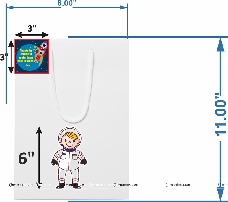 Customized return gift bag based on the theme. White bag with a theme based customized sticker on the front side.