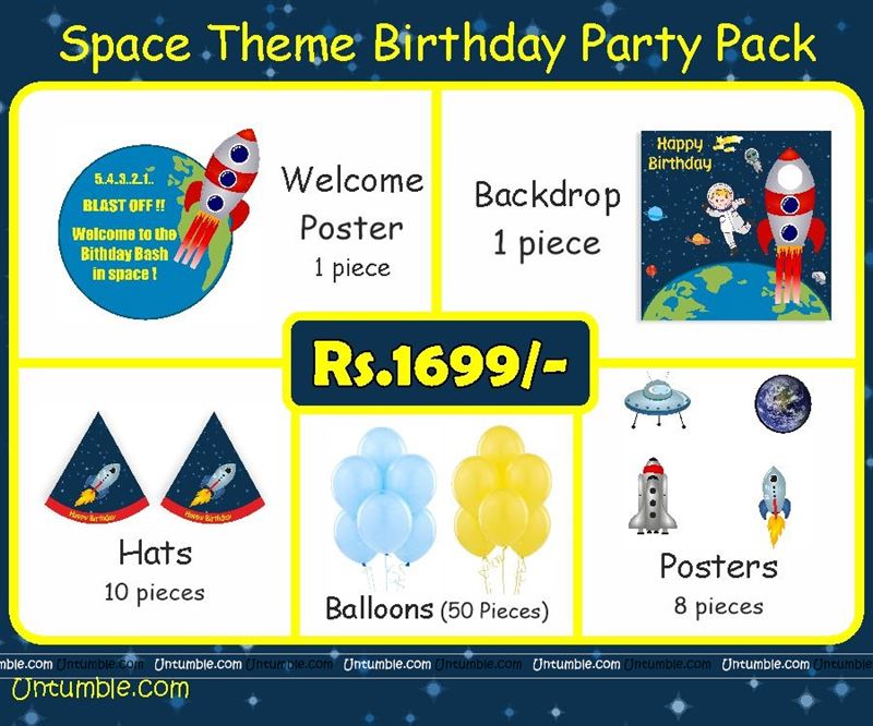 Space Super saver birthday decoration kit (Pack of 58 pieces)