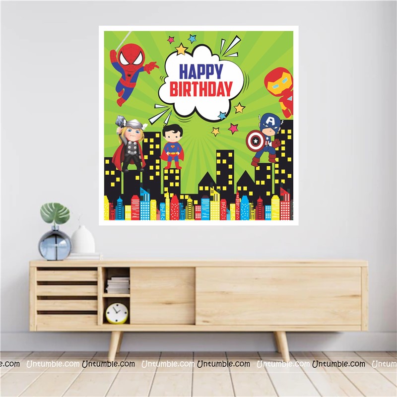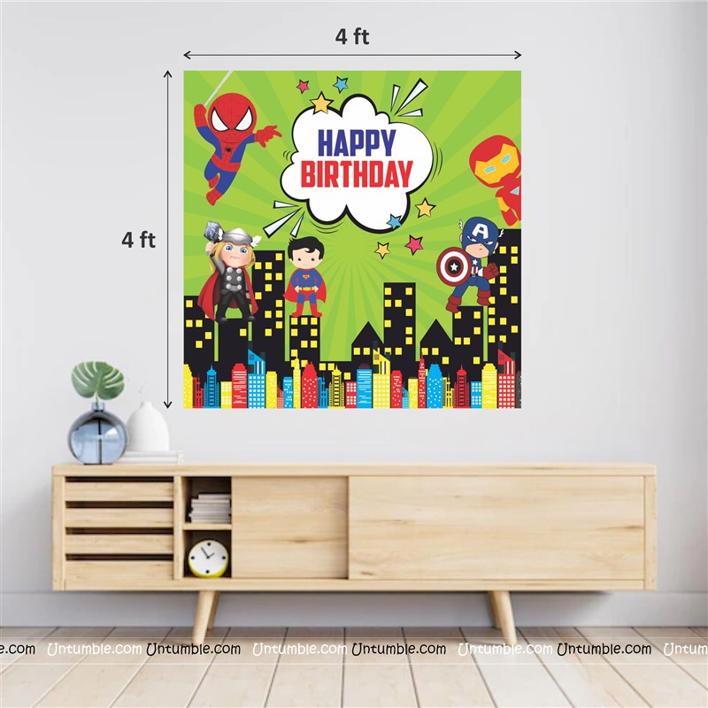 Super Hero Theme Yellow Background Backdrop, Pack of 1