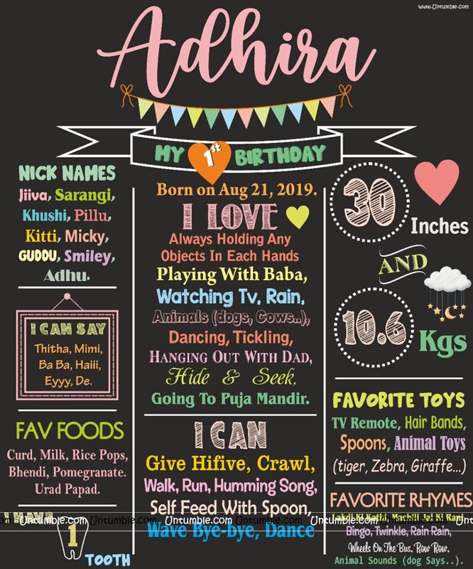 Personalized birthday chalkboard posters made of foam board. Custom printed with the info about your child provied in the form provided.