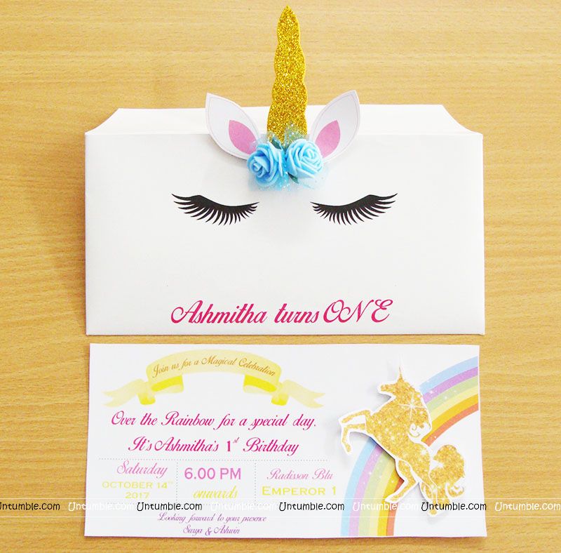 Shape of invite and printing on envelope can be customized. You can add your party date, kid's name, venue and all other details to the card. The details are printed on the card.