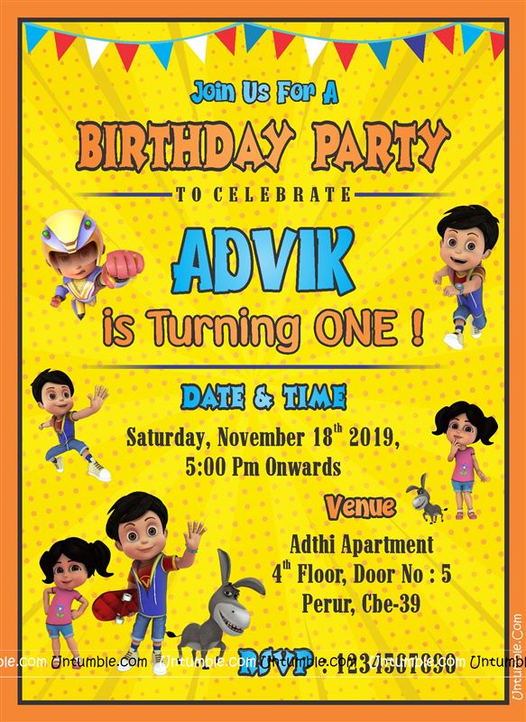 Design of the invite and sticker are customized. You can add your party date, kid's name, venue and all other details to the card. The details are printed on the card.