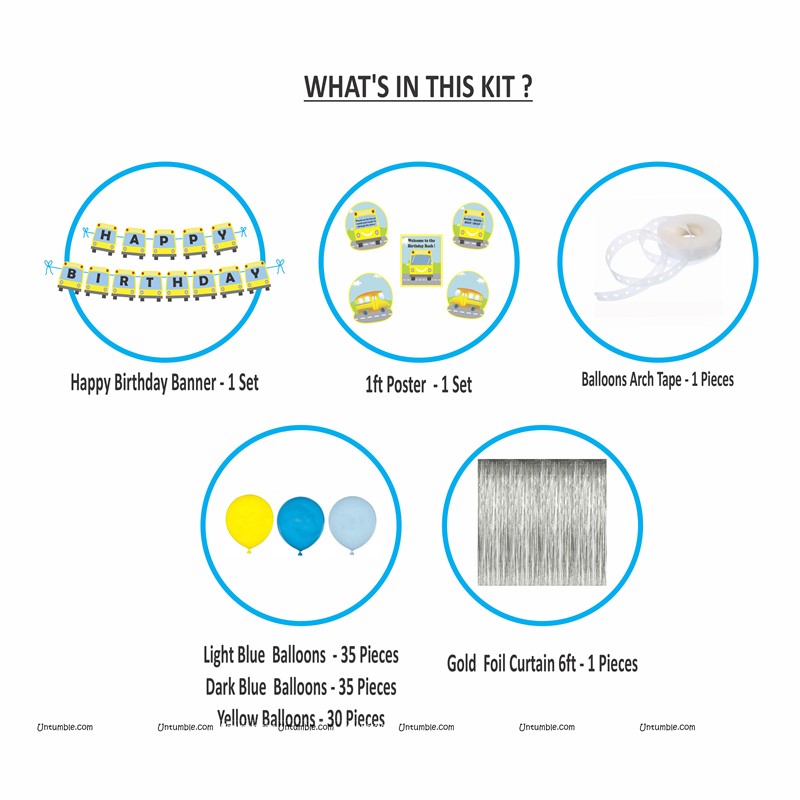 Wheels on the bus Super saver birthday decoration kit (Pack of 58 pieces)